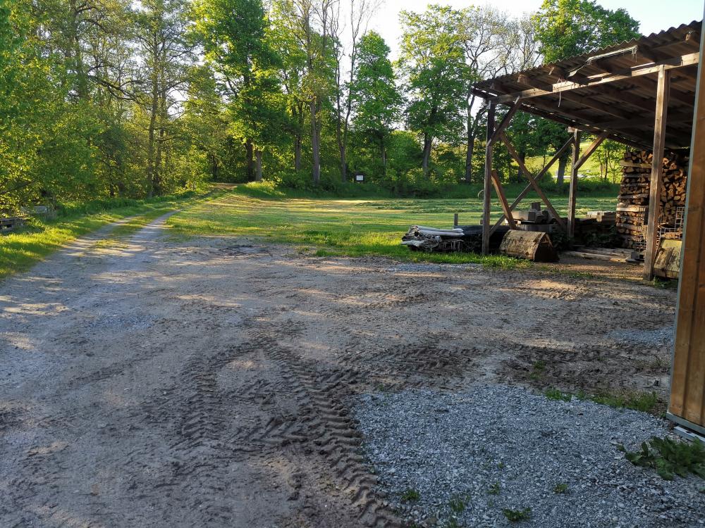 Der Stellplatz ist auf meinem Hof an der Maschinenhalle ruhig gelegen. Diese liegt direkt an der Ulster und dem Mühlbach.