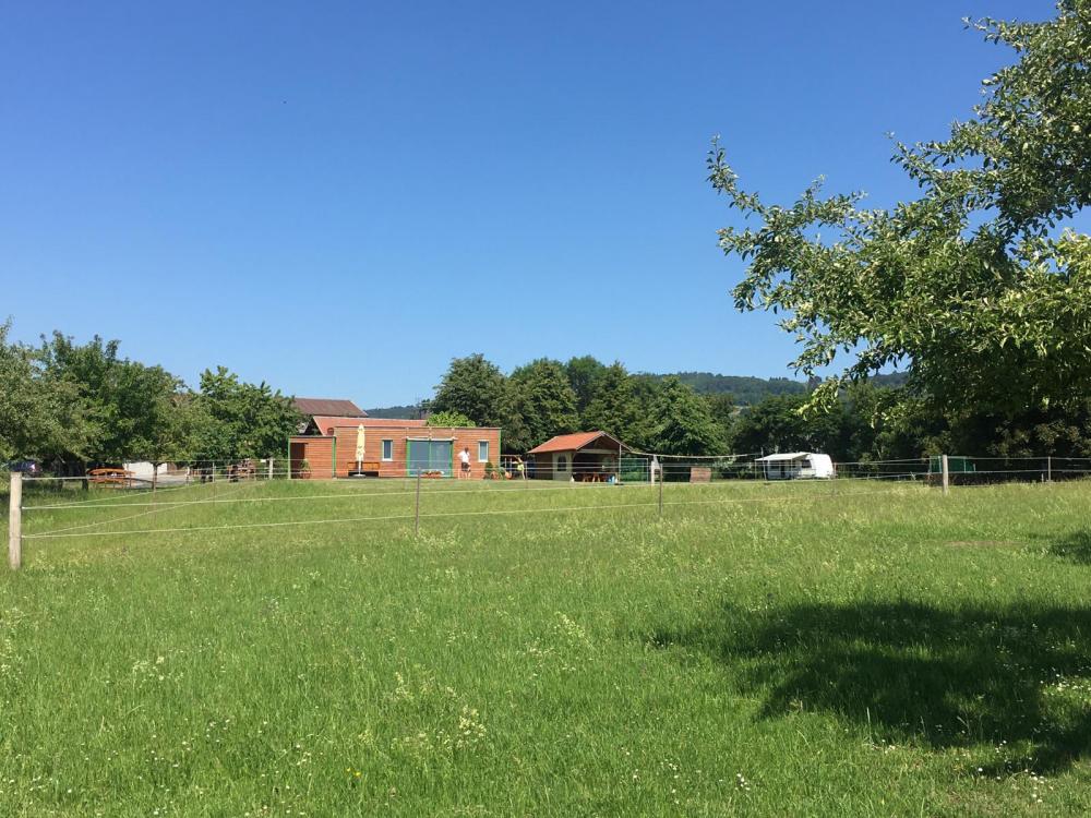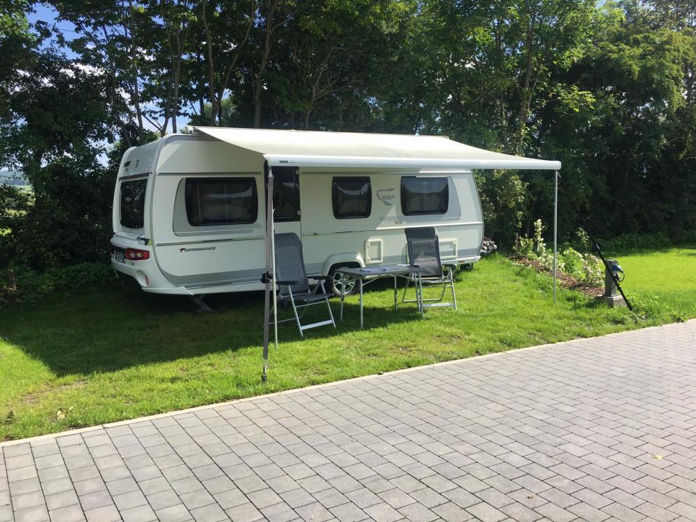 Stromanschluss ist vorhanden, Dusche und WC können im Ferienhaus genutzt werden (eigenes Versorgungshaus für Camper ist in Planung).