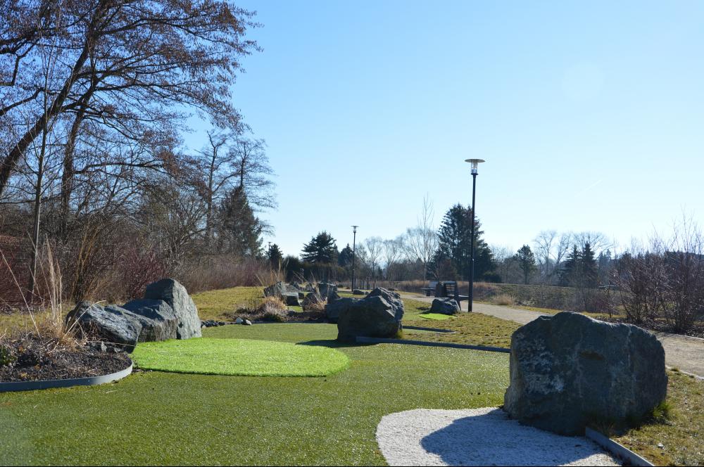 Direkt an der Einfahrt zum SOLE Reisemobilhafen liegt das Info-Gebäude. Eine 18-Loch-Spielgolfanlage, ein Spielplatz sowie eine Kanu-Anlegestelle befinden sich auf der vorgelagerten Insel